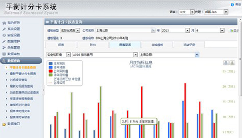 系統(tǒng)實現(xiàn)了基于平衡積分卡理念的公司戰(zhàn)略層管理,將組織的戰(zhàn)略落實為可操作的衡量指標(biāo)和目標(biāo)值,并在系統(tǒng)中進(jìn)行預(yù)測、填報、審批和數(shù)據(jù)分析,用來與預(yù)期管理目標(biāo)進(jìn)行比對,以便于獲取真實的目標(biāo)數(shù)據(jù)值來調(diào)節(jié)公司的戰(zhàn)略。